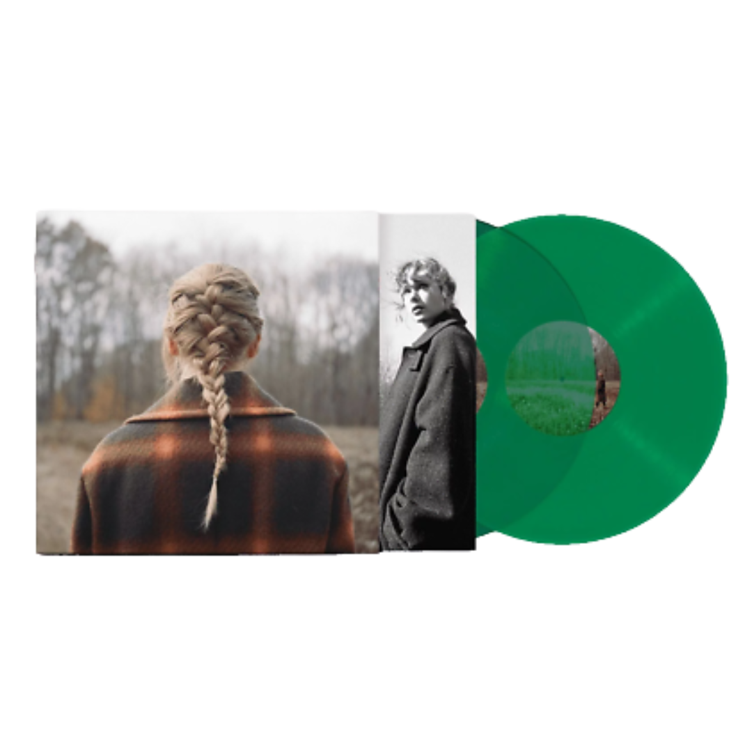 Doble LP de vinilo verde. Incluye dos canciones adicionales. El noveno álbum de estudio de Taylor Swift, Evermore, es el disco hermano de Folklore. Estas canciones fueron creadas con Aaron Dessner, Jack Antonoff, WB y Justin Vernon.
